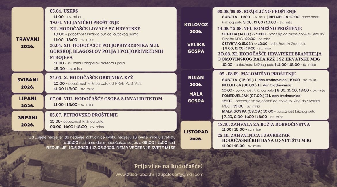 Respored hodočašća u Svetištu MBG za 2026. godinu